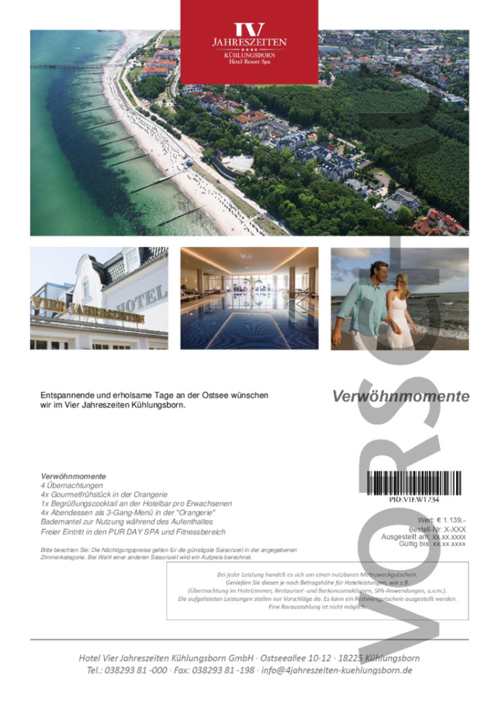 Ostseeluft 3 Übernachtungen in der gebuchten Kategorie 3 x Frühstück Abendgenuss in drei Gängen oder Buffetform á la chef Ein Wellnessgutschein in Höhe von 20,00 € pro Erwachsenen* Wohlfühlbademantel zur Nutzung während Ihres Aufenthaltes Freier Eintritt in den PUR DAY SPA und Fitnessbereich *Mitreisende Kinder erhalten das oben genannte Paket ohne Wellnessgutschein. Bitte beachten Sie: Die Nächtigungspreise gelten für die günstigste Saisonzeit in der angegebenen Zimmerkategorie. Bei Wahl einer anderen Saisonzeit wird ein Aufpreis berechnet.